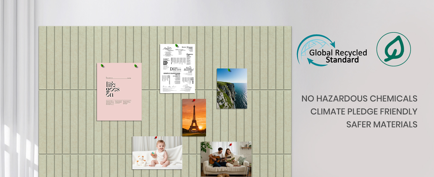 【خالية من الأظافر وسهلة التركيب】ببساطة قم بتوصيل عروات لاصقة النانو القوية المتوفرة بالجزء الخلفي من بلاط اللباد أو مباشرة على الحائط. قم بترتيب البلاط اللباد في حجم لوحة الإعلانات المرغوبة.
