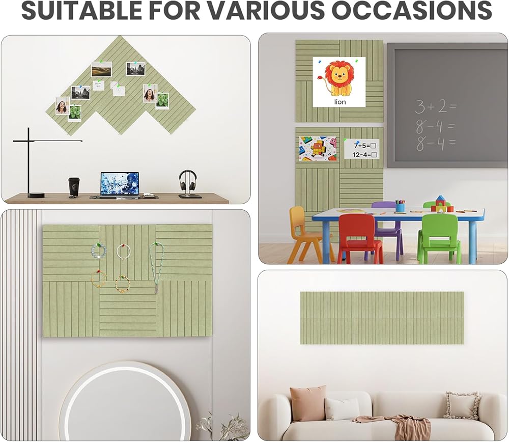 【لوحة إعلانات من اللباد】تحتوي على 12 عبوة من بلاط جدران من اللباد مقاس 11.8 بوصة × 11.8 بوصة، وسمك 0.35 بوصة، و60 قطعة من شريط الأكريليك مزدوج الجوانب و30 دبوس دفع. وفقًا لاحتياجاتك، يمكن دمجها في 36 بوصة × 24 بوصة و48 بوصة × 36 بوصة وما إلى ذلك. لوحات الإعلانات المصنوعة من اللباد أكثر مقاومة للتمزق وأكثر كثافة وتدوم لفترة أطول من الفلين والنشرات التقليدية لوحات.
