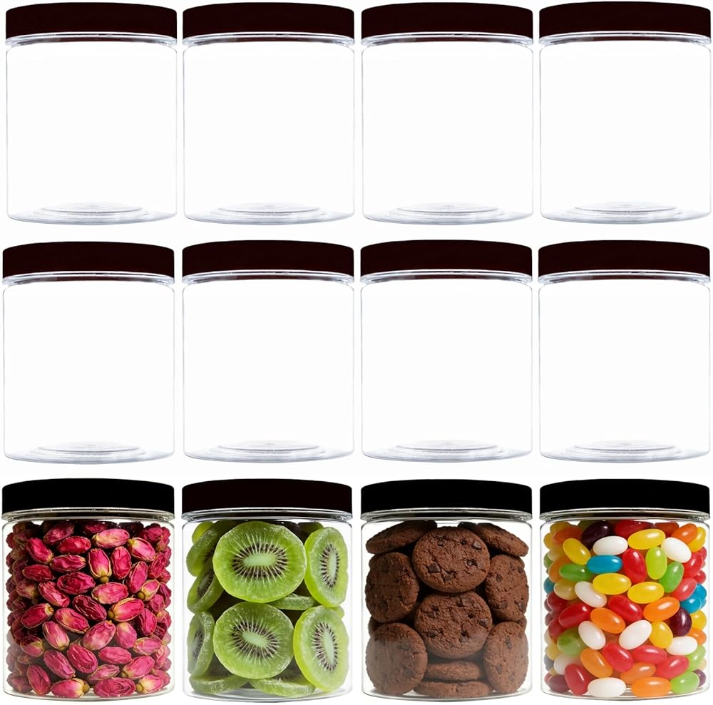 • QUALITY MATERIAL:the 8oz plastic jars with lids are made of quality plastic, the surface is smooth, the body of the bottle is thick and solid, hard and sturdy, not easy to break