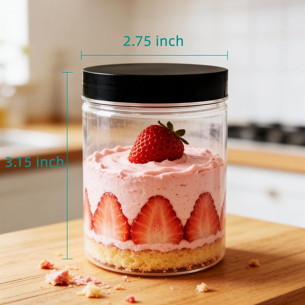 8 oz plastic containers with lids with wide mouth and thick walls. They are durable and resistant to impact. Besides,