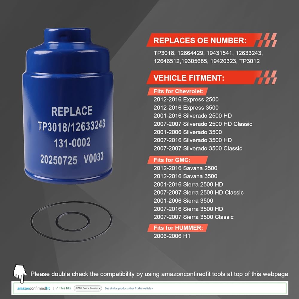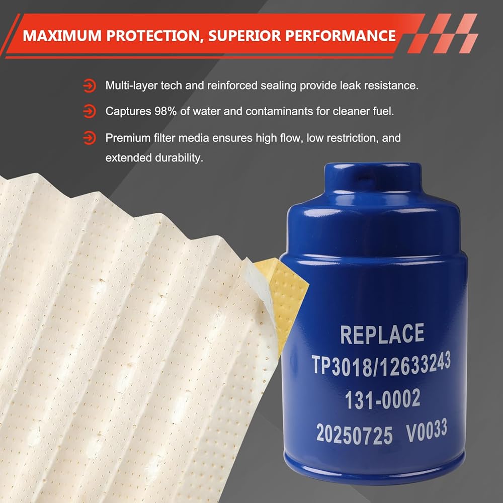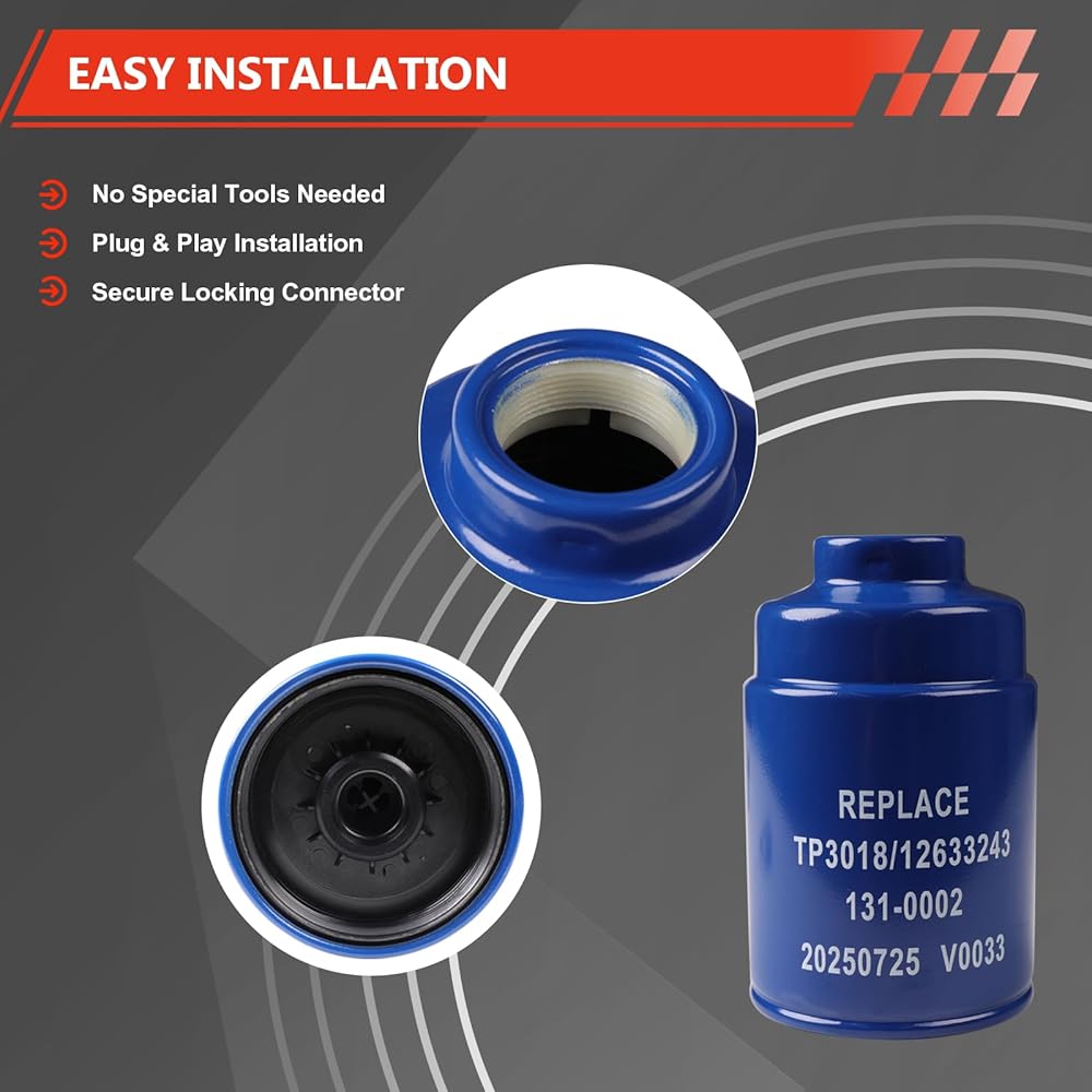 Premium Fuel Filter - Direct Replacement for TP3018, 12664429, 19431541, 12633243, 12646512, 19305685, 19420323, TP3012.