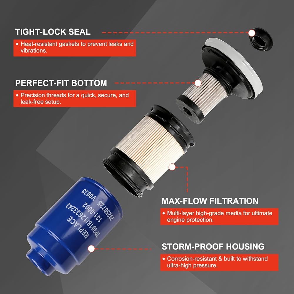 مجموعات فلتر الوقود مع سدادات متوافقة مع دوراماكس 6.6 لتر، تناسب 2001-2016 Chevy Silverado/GMC Sierra 2500HD، 2007-2016 3500HD، 2012-2016 Express/Savana 2500 3500، يستبدل TP3018 (19431541)