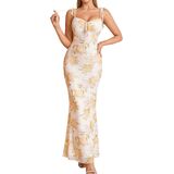 فستان KUTUMAI الصيفي طويل مزين بالزهور وربطة الكتف Bodycon فساتين رسمية طويلة لحفلات الزفاف للنساء in Kuwait