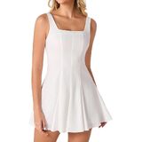 فستان قصير: فساتين قصيرة للنساء، فساتين فضفاضة للنساء، فساتين خط للنساء، فستان بدون أكمام، فستان ملائم ومتوهج للنساء، رقبة مربعة وخصر مصمم يبرز الصورة الظلية الجميلة، بينما تضيف الحاشية المكشكشة طبقات غنية ولمسة حيوية للمظهر