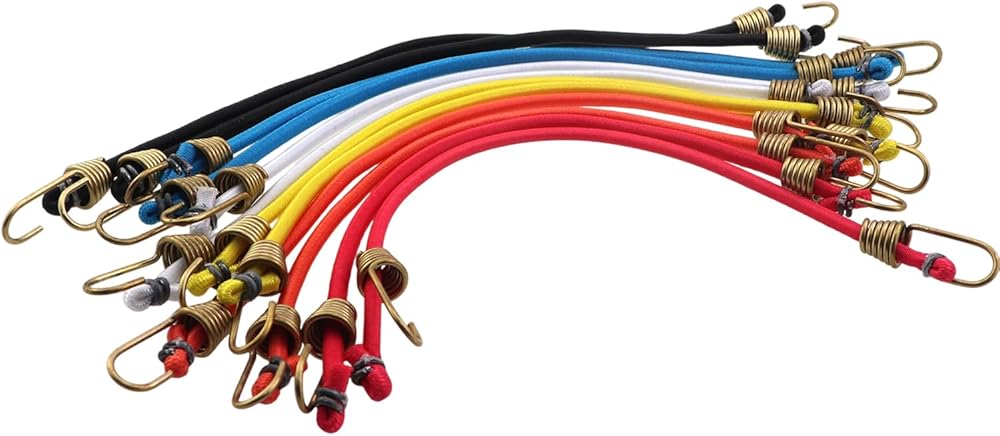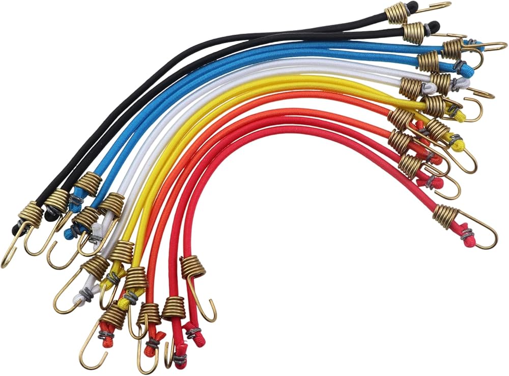 12 قطعة من حبال بنجي صغيرة مقاس 25.4 سم مع خطافات للتخييم في الهواء الطلق وخيام الأقمشة والدراجات ورفوف سقف الأمتعة وأشرطة تأمين البضائع أحمر وأسود وأزرق وأصفر وأبيض وبرتقالي