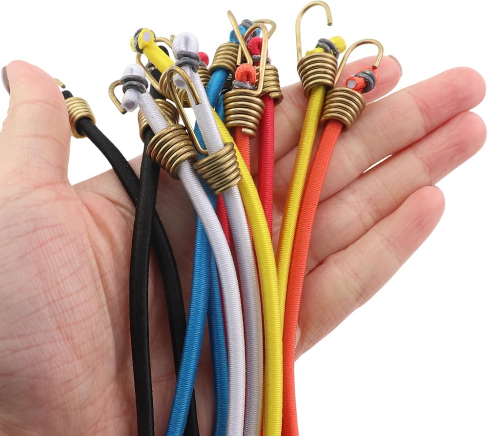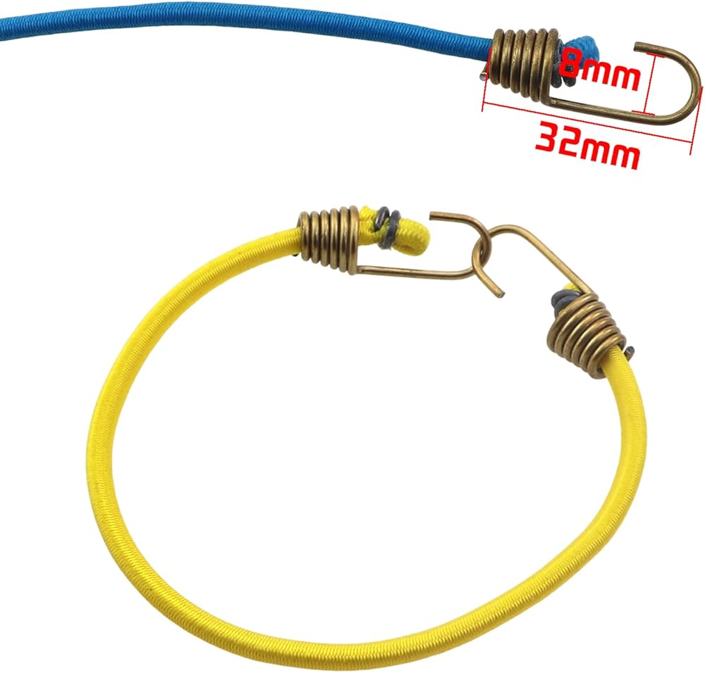 Dimensions: Overall length 254mm /10 inches, hook length 32mm, rope width 4mm. The small elastic rope is compact in size and lightweight in design, making it easy to store and carry. It is a convenient and essential tool for outdoor activities, DIY projects, etc.