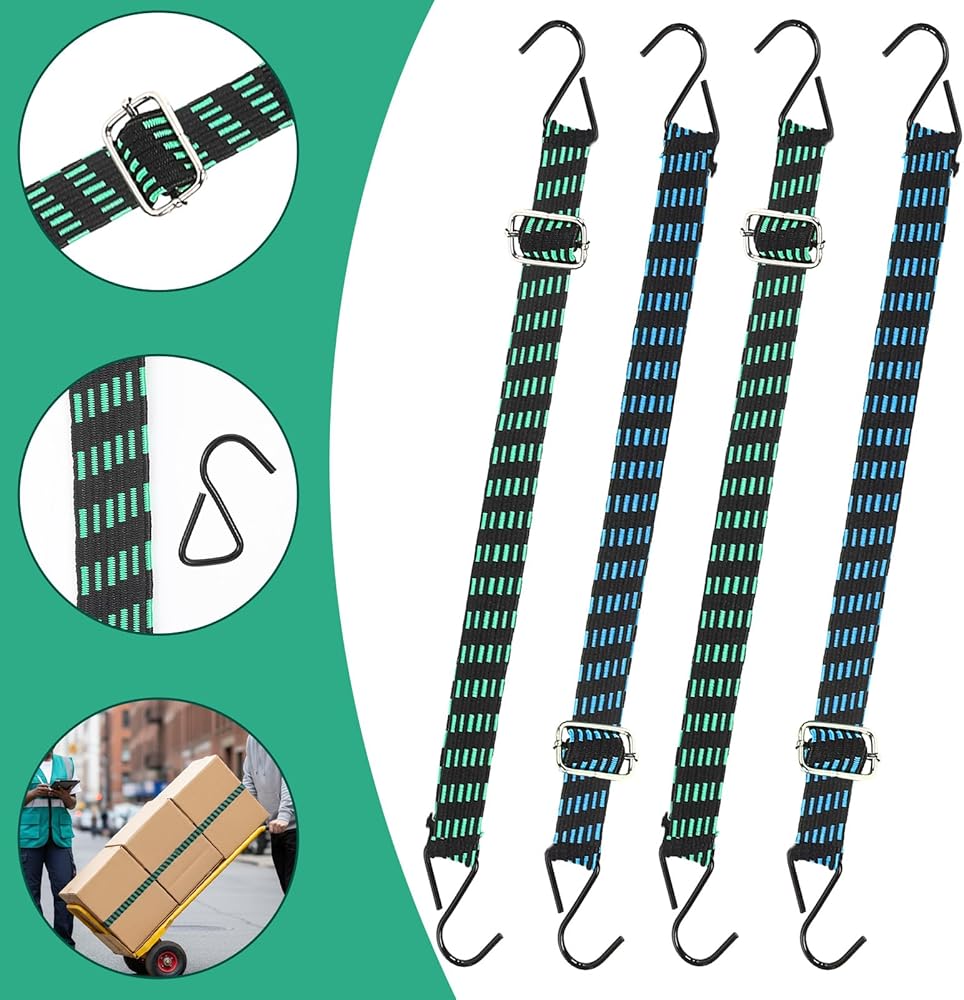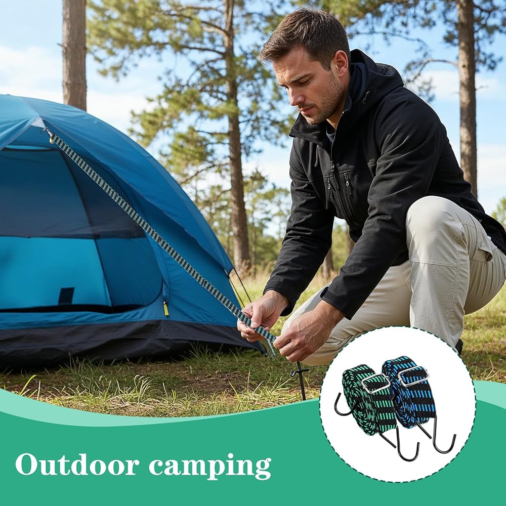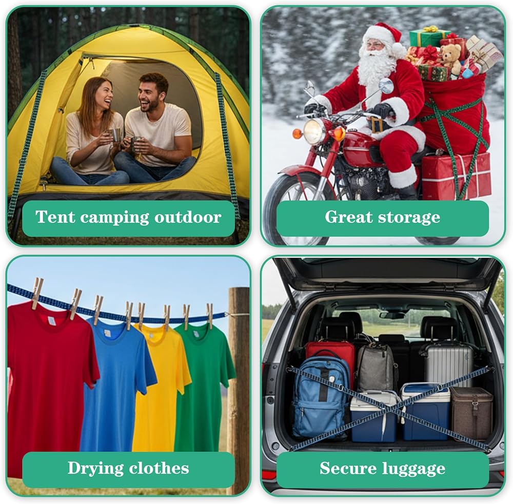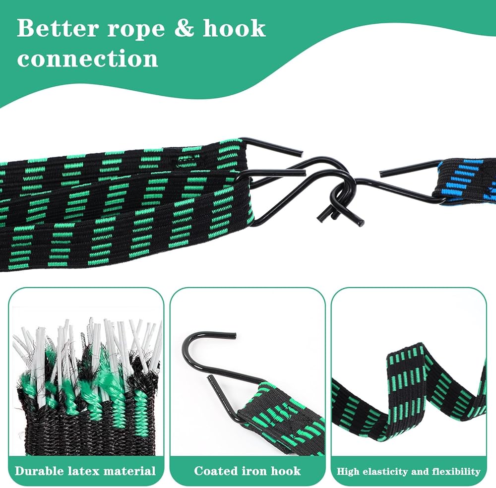 • 【Multi-Purpose Use】This set of bungee straps is suitable for numerous tasks. They can be effectively used to secure luggage on a roof rack, fasten a tarp over firewood or camping gear, organize items in a truck bed, or hold moving boxes in place, providing a practical solution for both household and outdoor needs
