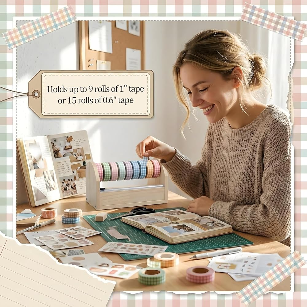 • Ideal Gift for Crafters & Professionals: A thoughtful present for artists, teachers, and organizers. Combining practicality with an elegant wooden aesthetic, it enhances productivity in crafting, labeling, and decorating projects. (Note: Masking tapes are not included.)