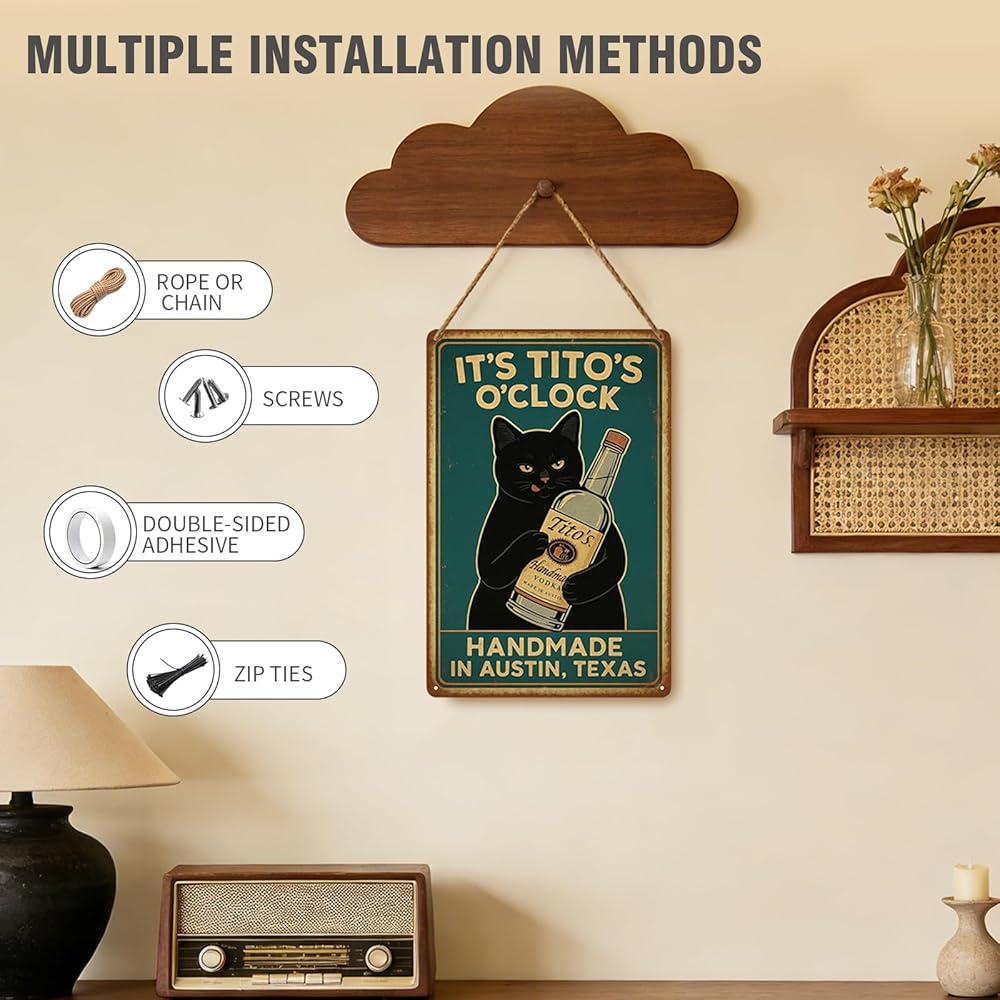 Cat signs home decor.Funny Bar Signs Show Me Your Tito's Black Cat Poster Man Cave Sign Vintage Bar Sign Bar Wall Decor 12" * 8" funny signs for man cave decor college apartment posters for men alcohol gifts cool stuff for your room