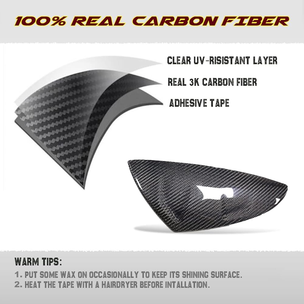 مظهر عدواني - غطاء مرآة الرؤية الخلفية المصنوع من ألياف الكربون أكثر اتساقًا مع طراز السيارة بأكملها، ويضيف لمسة فردية أنيقة ويجعل سيارتك تبدو أكثر احترافية وراقية وفاخرة.