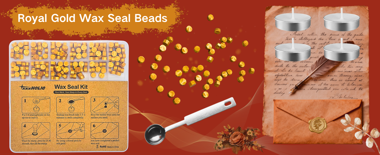 لمسة نهائية أنيقة باللون الأحمر النبيذي: تذوب كل خرزة شمع في ختم ذهبي غني وعميق مع مظهر لامع واحترافي مثالي لإضافة لمسات كلاسيكية وشخصية إلى المراسلات والهدايا.