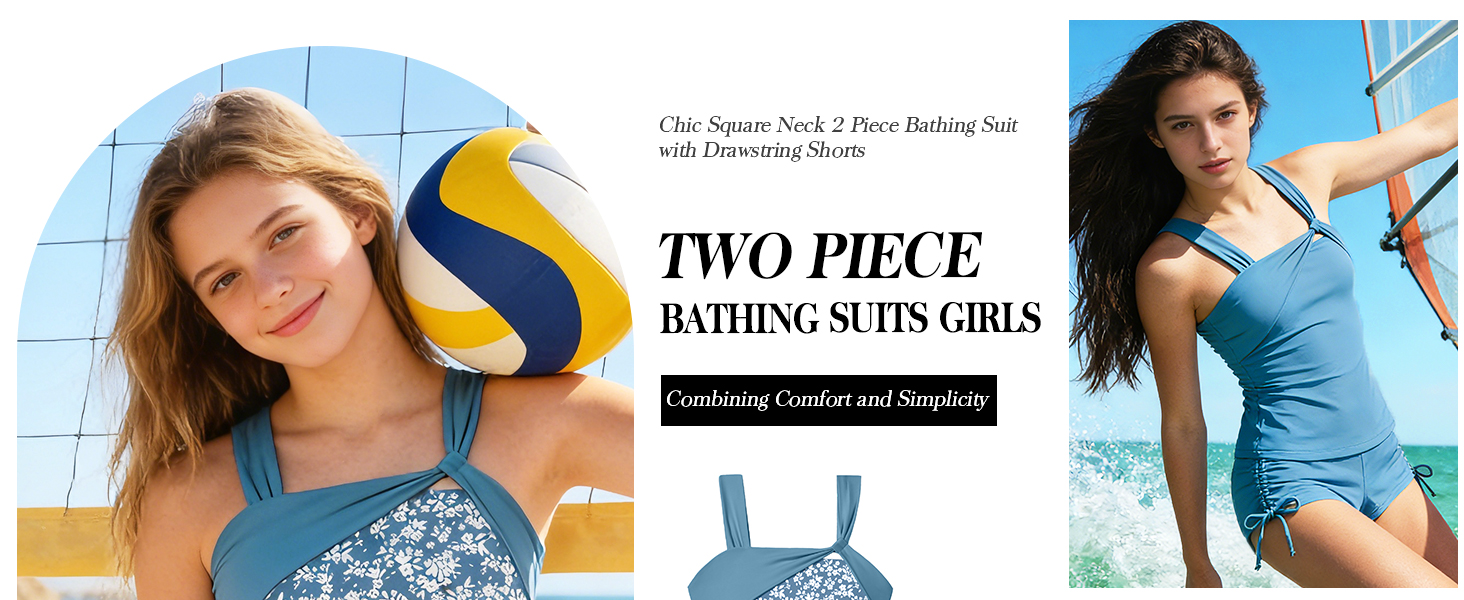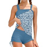 ملابس سباحة للفتيات تانكيني مكونة من قطعتين لباس سباحة برقبة مربعة مبطنة وسروال قصير برباط ملابس سباحة للفتيات 9-16T in Kuwait