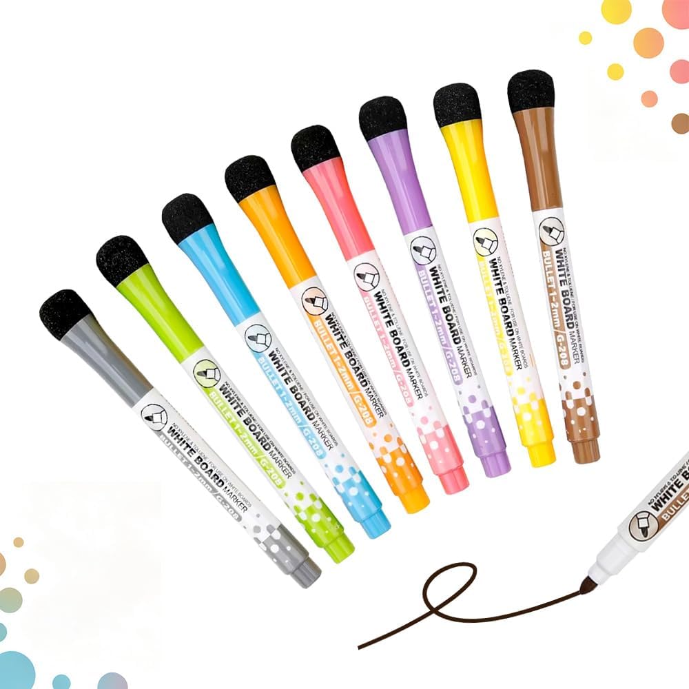 Stay organized at home, school, or work with this 8 pack colorful magnetic dry erase marker set. Designed for everyday planning and task tracking, these markers are perfect for refrigerator whiteboards, calendar boards, chore charts, and classroom boards.