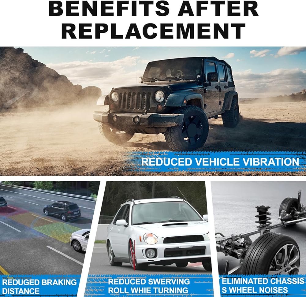 • 【تحسين التعامل والسلامة】تمتع بتجربة جر أفضل وتقليل لفة الجسم أثناء المنعطفات والتوقف المفاجئ. تساعد ممتصات الصدمات هذه في الحفاظ على اتصال الإطارات بالطريق، مما يوفر مزيدًا من الأمان والتعامل الدقيق في ظروف القيادة المختلفة.