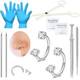 مجموعة ثقب احترافية كاملة: تتضمن مجموعة ثقب DJCIW كل ما تحتاجه للحصول على ثقب دقيق وصحي، وإبرتي ثقب معقمة من الفولاذ المقاوم للصدأ 18 جرام، وأداة مشبك ثقب واحدة، وزوج واحد من القفازات التي تستخدم لمرة واحدة، وسادتي تنظيف، وقطعة واحدة مدببة ثقب (1.0 مم)، وقطعة واحدة من أداة ثقب الكرة وحلقتين أنيقتين من الفضة 20 جرام.