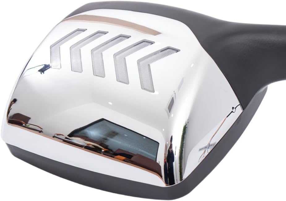 - مجموعة مرآة غطاء محرك السيارة من الكروم مع ضوء LED وخمسة أسهم مناسبة لشاحنة Kenworth T680 2013-2019، زوج واحد من جانب السائق + جانب الركاب