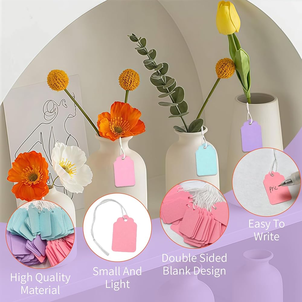 • 【Tricolor Mix for Visual Organization】Features a curated mix of pink, blue, and purple tags for instant visual categorization. Easily color-code your items—use pink for women's apparel, blue for men's wear, and purple for sale items—making inventory and price management effortlessly clear.