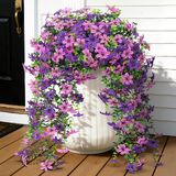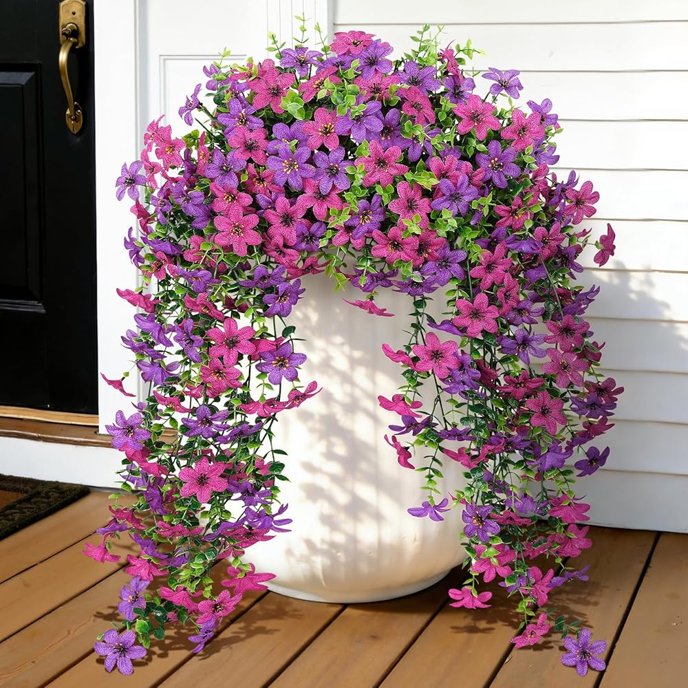 Roberly 4 Pcs Artificial Hanging Flowers for Outdoors, Realistic Faux Silk Flowers UV Resistant Fake Greenery Plants for Spring Summer Garden Porch Indoor Outdoor Home Decor, Purple