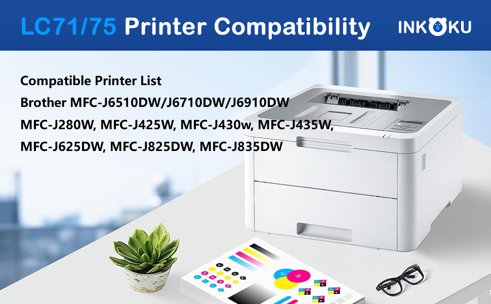 استبدال خراطيش الحبر المتوافقة مع INKOKU على نطاق واسع لحبر Brother LC75، وخراطيش حبر Brother LC71، وخراطيش حبر Brother LC79 XXL. مصممة بشكل مثالي لطابعات Brother بما في ذلك MFC-J6510DW، MFC-J6710DW، MFC-J6910DW، MFC-J280W، MFC-J425W، MFC-J430W، MFC-J435W، MFC-J5910DW، MFC-J625DW، MFC-J825DW، و MFC-J835DW، مما يضمن طباعة سلسة ومستقرة في كل مرة.