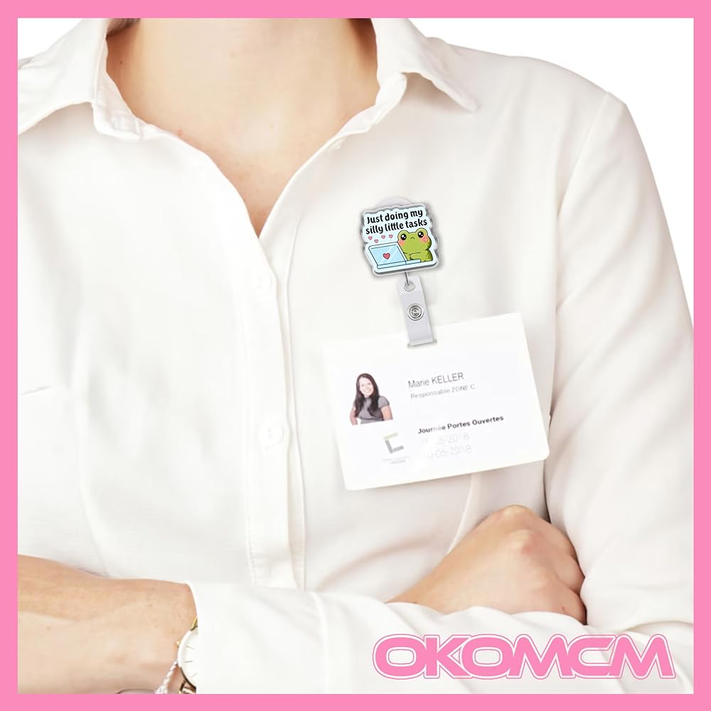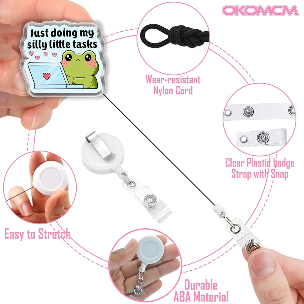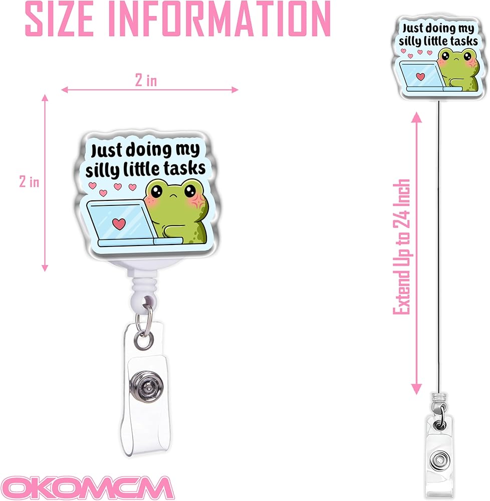 بكرات شارات قابلة للسحب من Just Doing My Silly Little Tasks، مقاس ضفدع لطيف مقاس 2 بوصة، مشبك حزام من الأكريليك، حبل شارة، إكسسوارات حيوانات مضحكة، هدايا DIY لصديق زملاء العمل