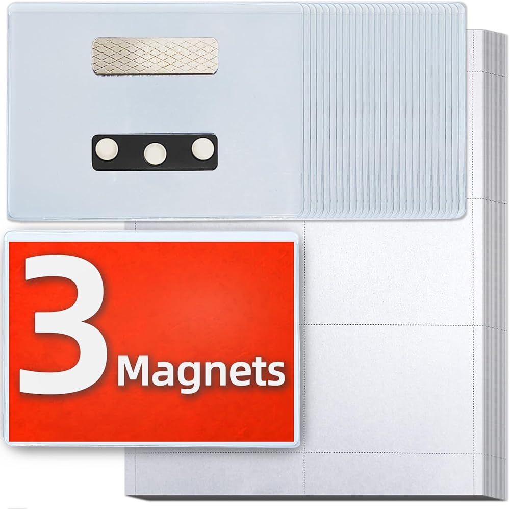 حامل شارة الاسم المغناطيسي بريسمايت 3x4، علامات الاسم المغناطيسية مع إدراجات قابلة للطباعة بالليزر/النافثة للحبر، 100 حزمة