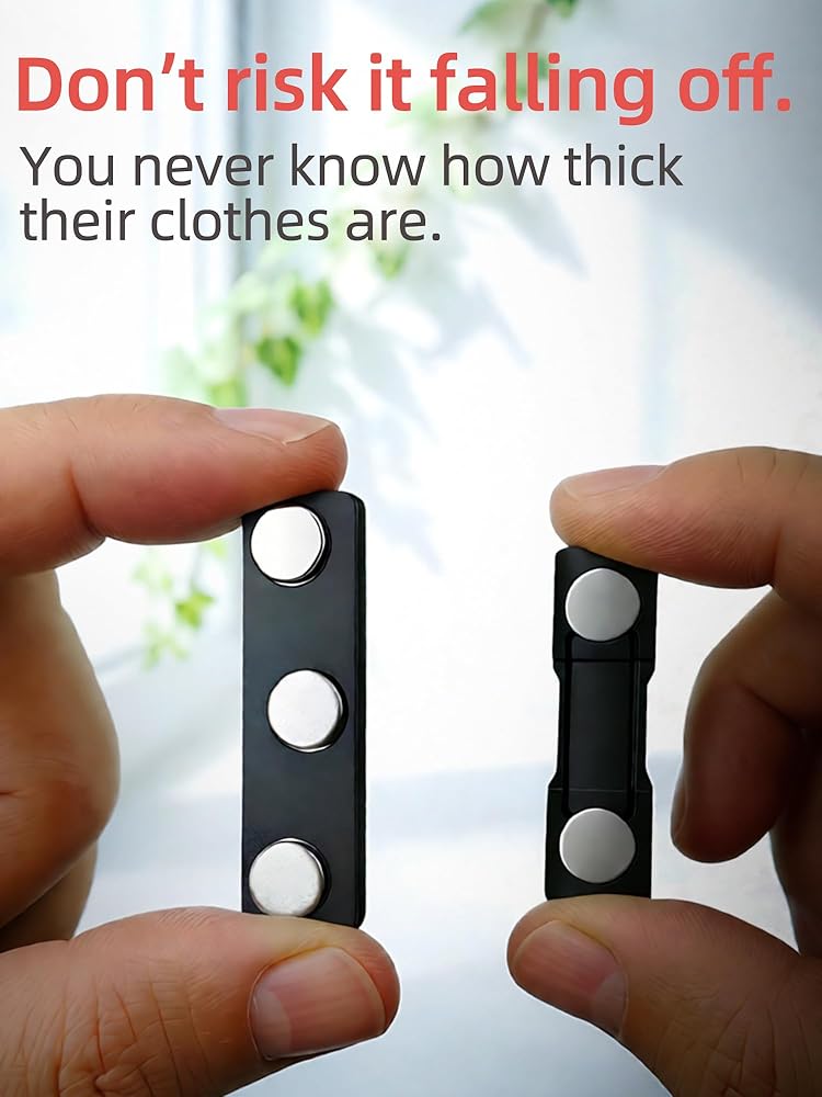 - يمكن تثبيته بشكل آمن على القمصان والقمصان والسترات من خلال الجذب المغناطيسي.