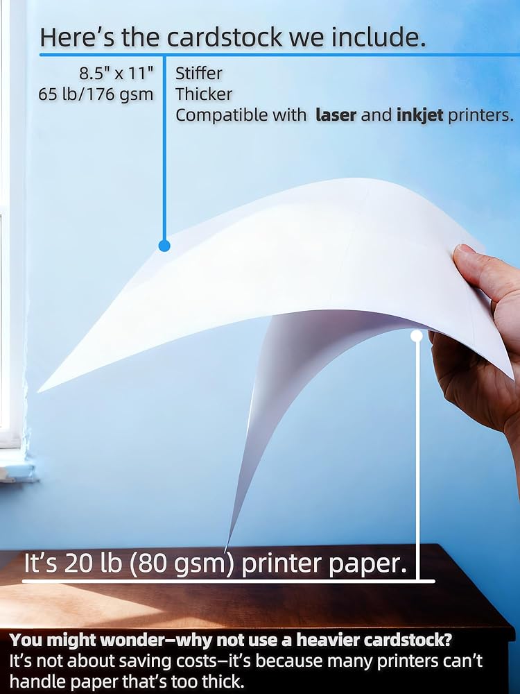 - يأتي مع 18 ملحقًا مجانيًا قابلاً للطباعة بالليزر/نفث الحبر. واحد أكثر من المطلوب.
