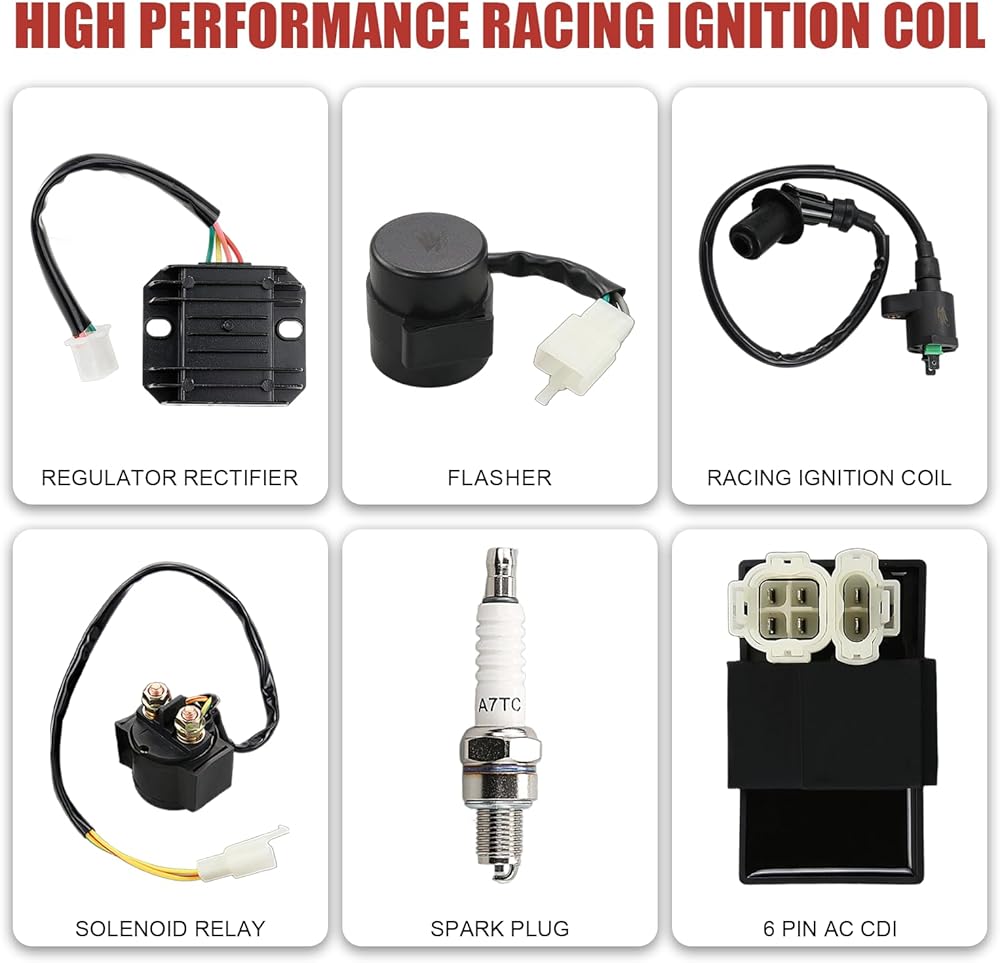 • مصممة بدقة لتوافق GY6 الواسع: مصممة خصيصًا لمحركات 50cc و125cc و150cc المستندة إلى GY6، تغطي هذه الحزمة كلاً من احتياجاتك في الإشعال والإشارة. يناسب مجموعة واسعة من الدراجات البخارية، وATVs، وعربات التسوق، والدراجات البخارية، والدراجات الرباعية من العلامات التجارية المشهورة مثل TaoTao، وKymco، وRoketa، وSunL، وHonda TRX. تم تصنيع كل مكون ليتوافق مع مواصفات OEM لضمان الملاءمة والوظيفة.