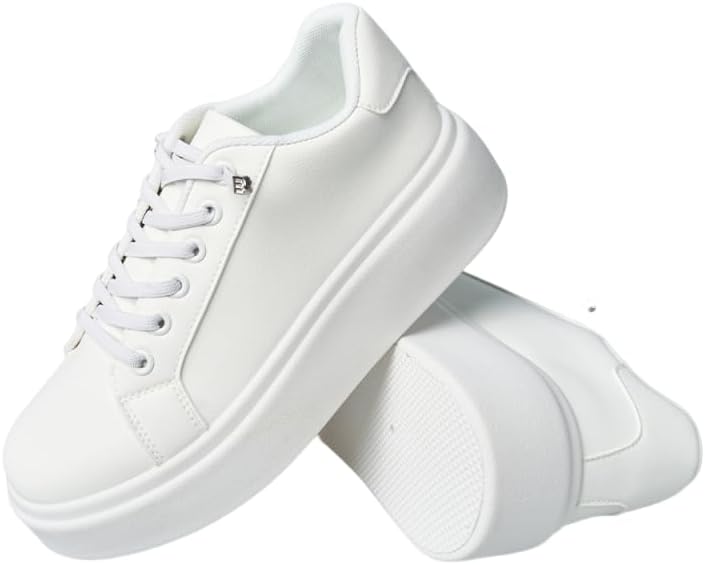 تصميم أنيق: تتميز هذه الأحذية الرياضية النسائية بلون أبيض كلاسيكي مع تصميم بسيط وأنيق، مثالية لمطابقة الملابس المختلفة من الجينز الكاجوال إلى السراويل الضيقة الرياضية، مما يجعلك مميزًا في أي مناسبة.