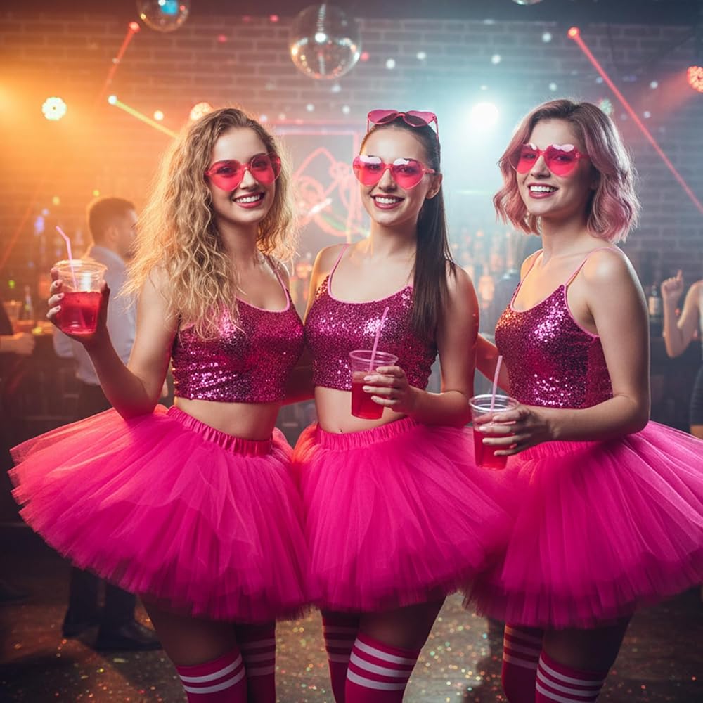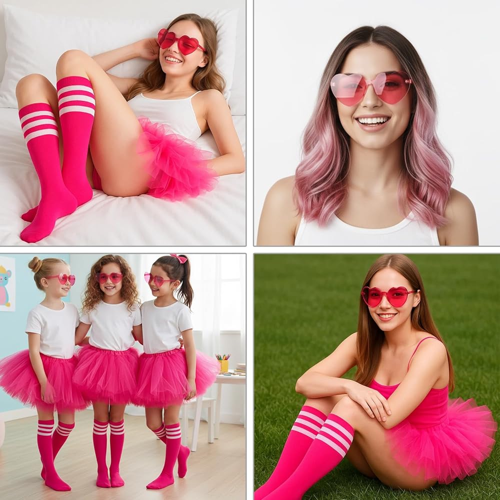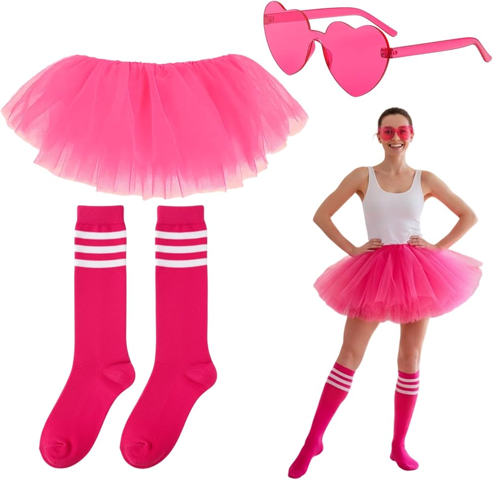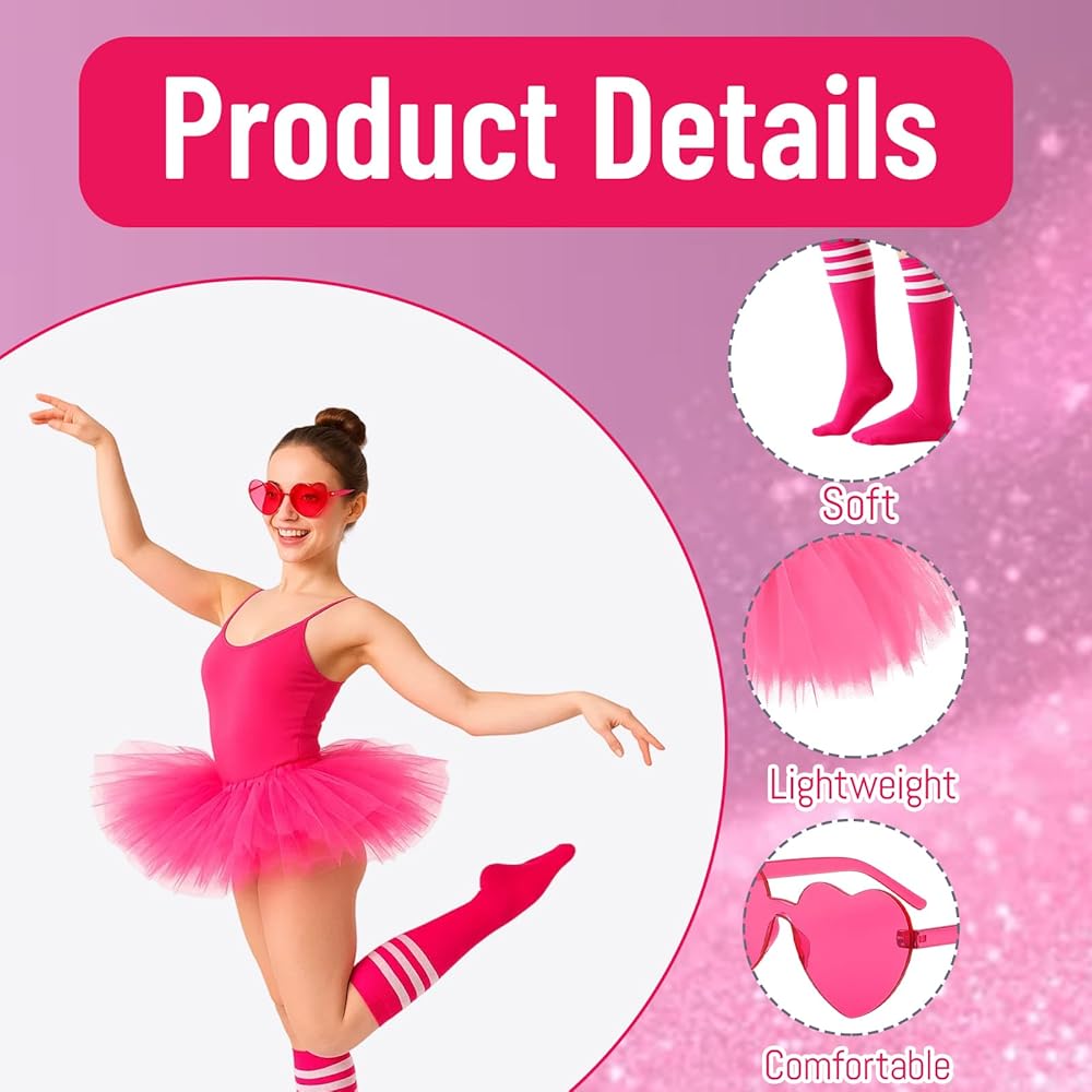 Elevate your wardrobe with this stunning hot pink tutu outfit set, designed to make you stand out at any event. The set includes a beautifully crafted tutu, matching socks, and chic glasses, creating a coordinated look that's perfect for dance performances, themed parties, or cosplay events. Made from high-quality tulle fabric, the tutu offers a lightweight and comfortable fit, allowing for ease of movement while maintaining a flattering silhouette.The elastic waistband ensures a secure and adjustable fit, catering to various body types. The included socks and glasses add an extra layer of style, making this ensemble a versatile choice for multiple occasions. Whether you're attending a dance recital, birthday party, or Halloween event, this hot pink tutu set will help you make a statement.Perfect as a gift for dancers, performers, or fashion enthusiasts, this three-piece set combines playful aesthetics with practical design. The vibrant hot pink color is eye-catching, while the comfortable materials ensure all-day wearability. Step into the spotlight with confidence in this adult pink tutu outfit.