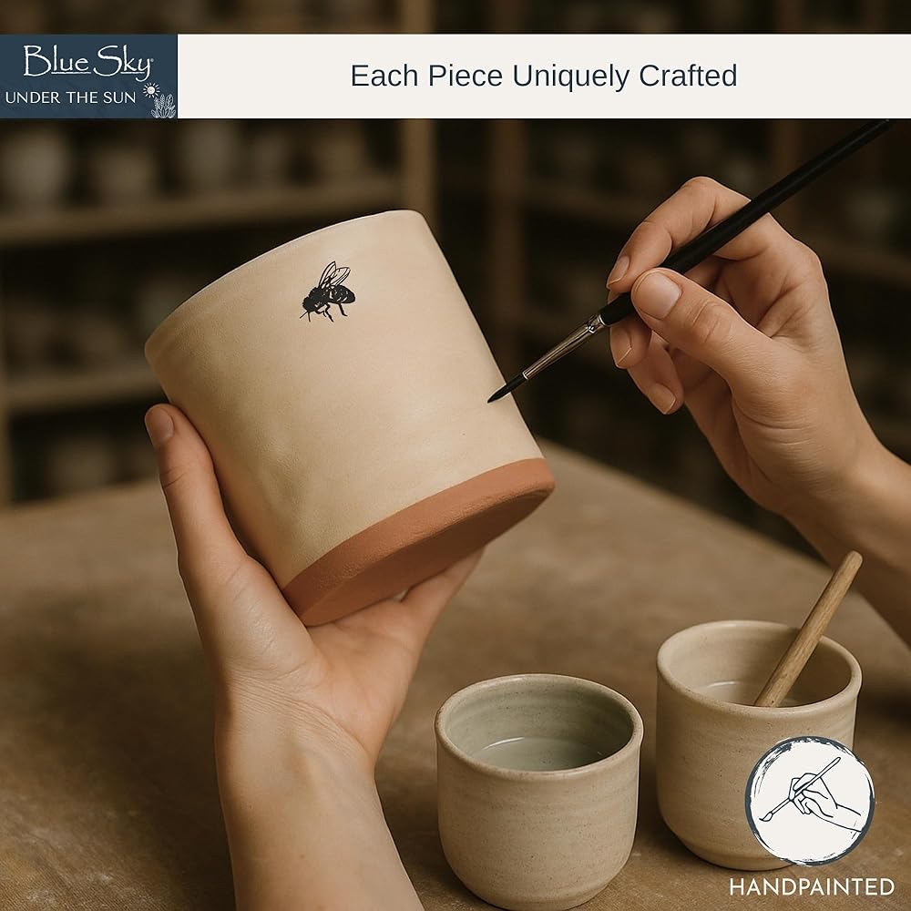 Blue Sky Ceramic Bumble Bee 5" Flower Pot. Blue Sky Ceramic offers high design trend-right ceramic designs for over 14 years. We design our own collection of trend-forward items, as well as individual and exclusive products. With this extraordinary design and a large array of talented artists and stellar in-house design team delivers a wealth of trend forward and innovative products.