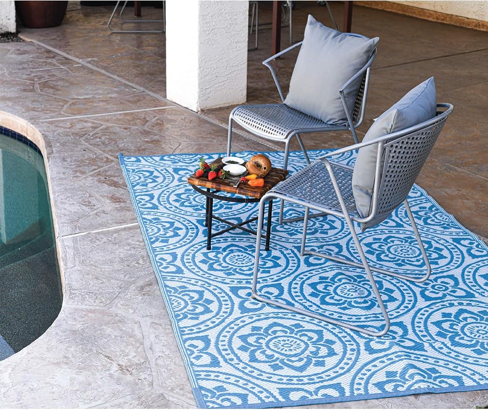 • MULTIFUNCTIONAL MAT: Use indoor or outdoor, Reversible mats are designed to be versatile whether it's used on your patio, by the pool, picnics, or your laundry room. With its lightweight and foldable features, these mats are easy to move around furniture and transport..Construction type:Machine Made