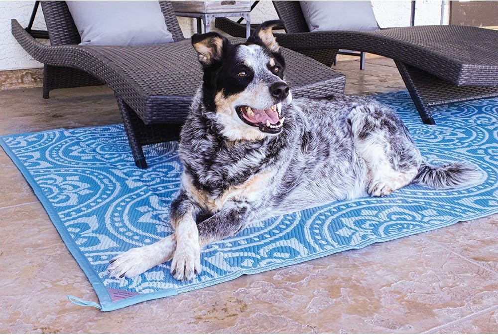 • WOVEN VIRGIN POLYPROPYLENE: Reversible mats are made with virgin polypropylene built with a woven structure designed to dry quickly and breathable so that will not hurt grass or damage your deck or patio.