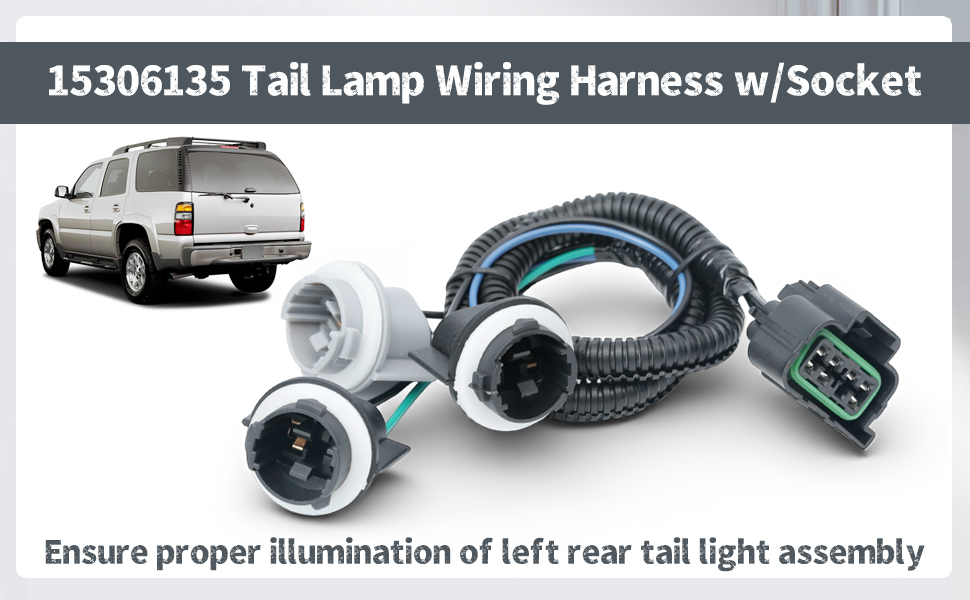 الطراز المتوافق: سرج أسلاك الضوء الخلفي الأيسر 15306135 متوافق مع شيفروليه تاهو 2000-2006، متوافق مع موديلات سيارات شيفروليه سوبربان 1500 2500 2000 2001 2002 2003 2004 2005 2006 وما إلى ذلك