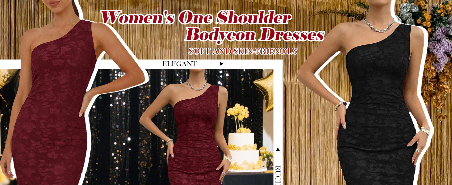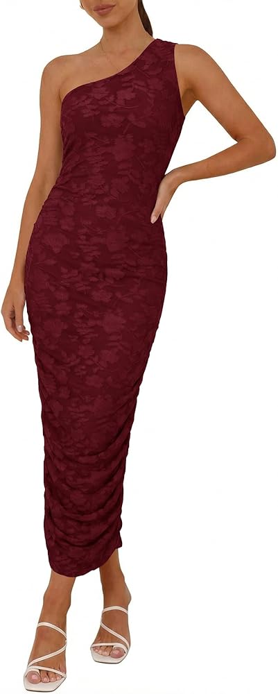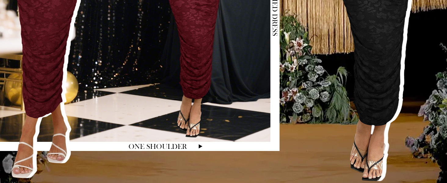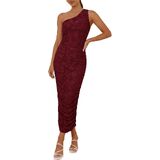 فستان Herou النسائي بكتف واحد مزين بالزهور بدون أكمام مكشكش فستان طويل أنيق لحفلات الكوكتيل مع بطانة للنساء in Kuwait