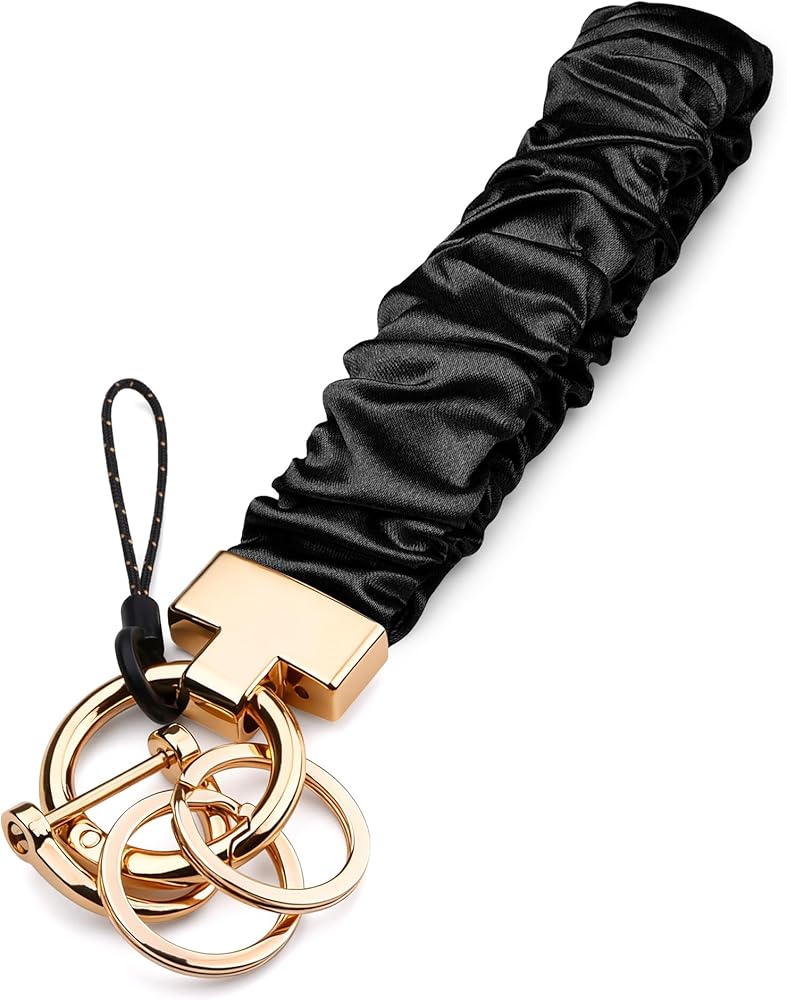 Hands-Free Carry Wristlet: This elastic scrunchie-style wristlet keychain slips on easily and stays securely in place. It's suitable for carrying keys, ID badges, small items like lip balm, and more- for sports, fitness, and travel.Soft & Premium Fabric: Made from a smooth satin-blend fabric with strong elastic that resists pilling and sweat stains. It offers lasting durability and comfort for everyday use