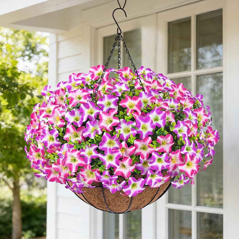 Versatile beyond outdoor hanging baskets—use the 13.8-inch stems in indoor planters, window sills or office pots for effortless natural charm. Best of all, no green thumb is needed: skip the repeated cost and hassle of fresh flowers, and enjoy picture-perfect floral decor 365 days a year.