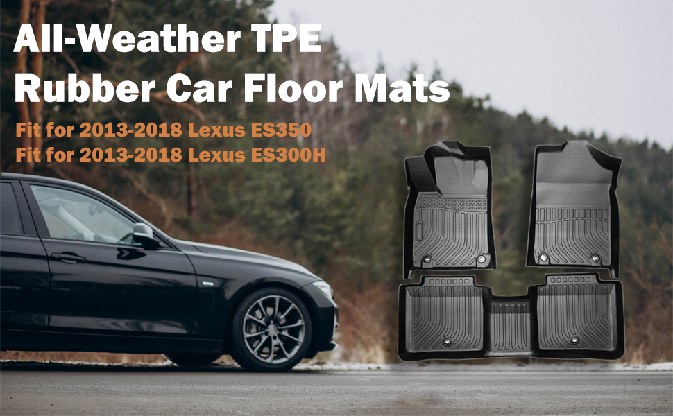 سجادات أرضية مطاطية TPE مناسبة لجميع الأحوال الجوية متوافقة مع 2013 2014 2015 2016 2017 2018 Lexus ES350 ES300H، مجموعة بطانات سجاد السيارة الكاملة الملائمة حسب الطلب (أسود)