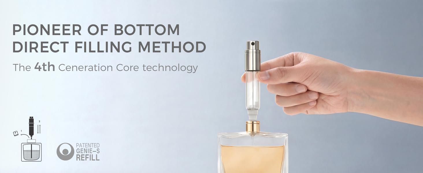 إعادة تعبئة سهلة من الأسفل: قم بإعادة التعبئة مباشرة من معظم زجاجات العطور القياسية في ثوانٍ مع تصميم التعبئة السفلية. لا يوجد قمع ولا انسكابات ولا عطر مهدر.