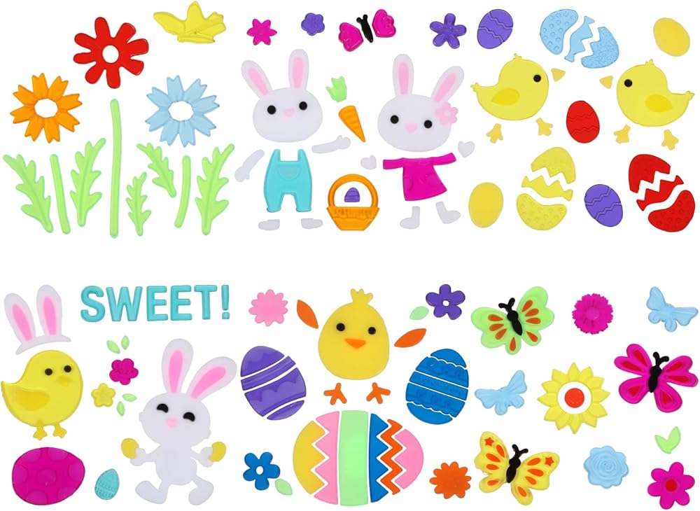 ممتعة لجميع أفراد العائلة: هذه الملصقات اللطيفة والملونة مثالية للأطفال والكبار على حد سواء لتزيين النوافذ والأبواب والمرايا والثلاجات وبرطمانات الحلوى أو البلاط بشكل إبداعي. نشاط عملي رائع لبناء ذكريات عيد الفصح العزيزة معًا