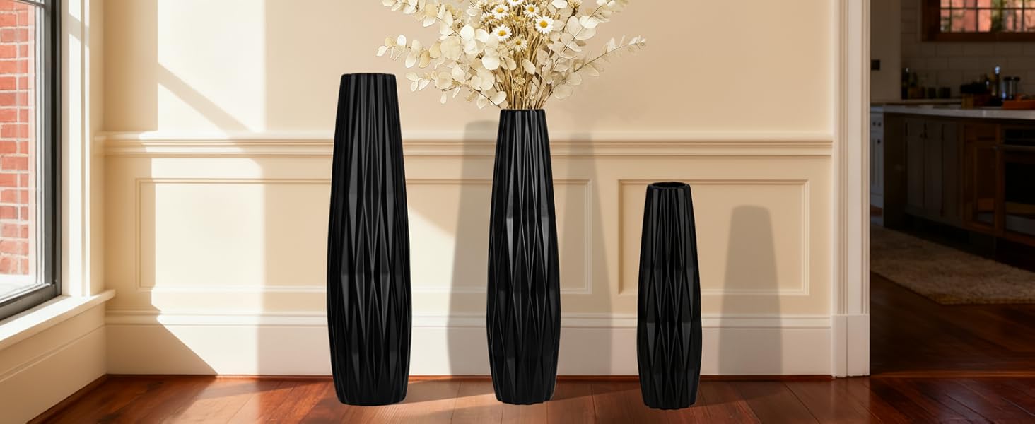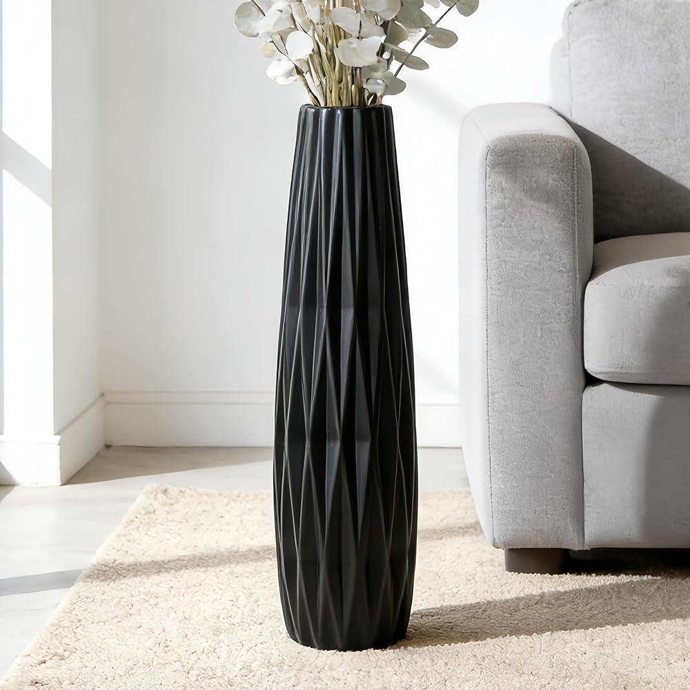 • تصميم حديث بسيط: مصنوعة من السيراميك الأسود غير اللامع، هذه المزهرية الأرضية الطويلة تضفي لمسة أنيقة وخالدة على أي ديكور منزلي حديث أو بسيط