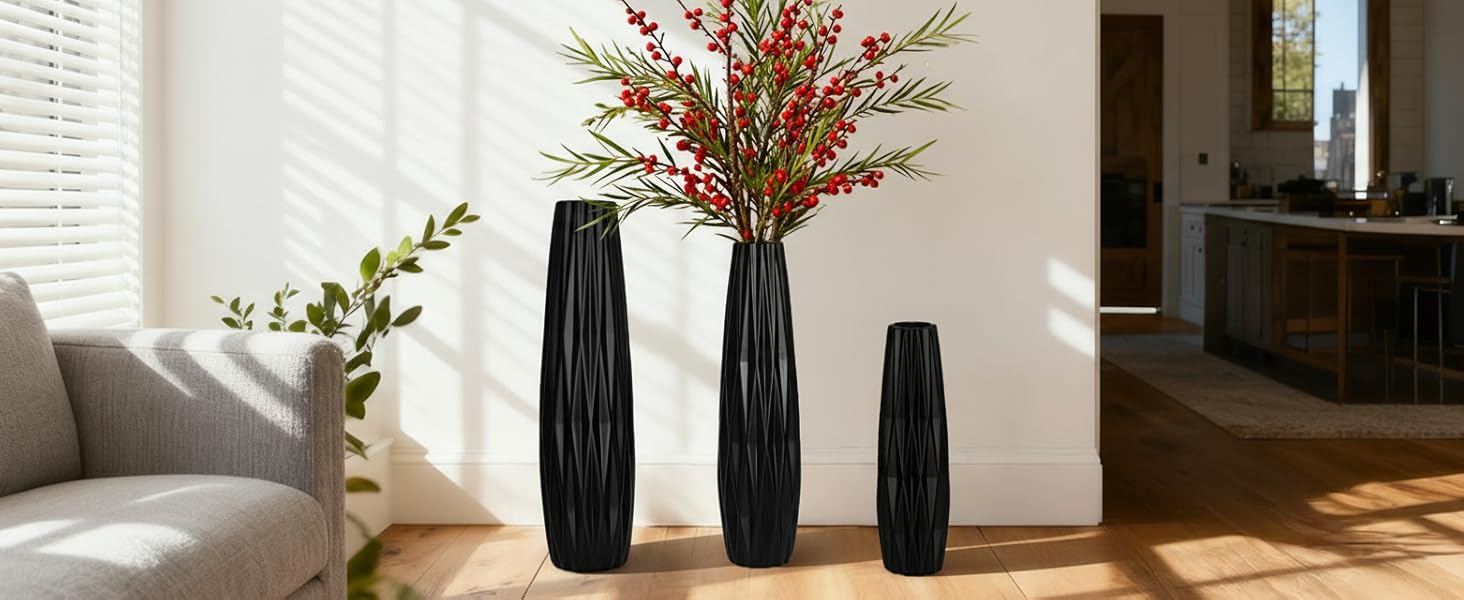 • لمسة منزلية متعددة الاستخدامات: سواء تم تصميمها بمفردها أو مع مزهريات أخرى، فإن هذه المزهرية السوداء الطويلة ترفع من منزلك بأجواء أنيقة وبسيطة