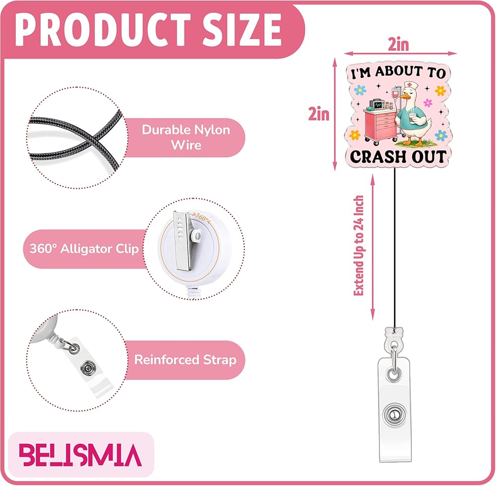 The Belismia acrylic badge reel, probation officer gifts is designed to combine everyday functionality with a clean, professional look. Made from high-quality acrylic, this 2 inch badge reel is lightweight, durable, and comfortable to wear throughout long workdays. The smooth, glossy finish and precise laser-cut edges ensure a polished appearance that holds up to daily use without fading or cracking. Featuring a strong 24 inch retractable cord, this badge reel, badge holder with retractable clip, work id badge holder, tactical badge holder allows quick and easy access to ID cards, key cards, or access badges without removing them from your clothing. The sturdy metal belt clip attaches securely to belts, pockets, or bags, keeping your badge in place during busy shifts. Ideal for nurses, teachers, office staff, students, and event workers, the Belismia badge nurse reel badge, badge reel set keeps essentials organized, accessible, and professional making it a practical accessory for work or a thoughtful everyday gift.