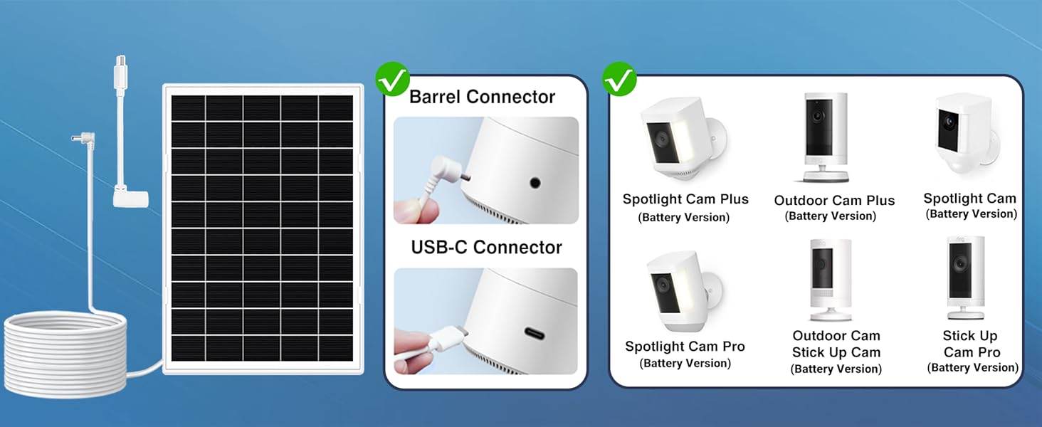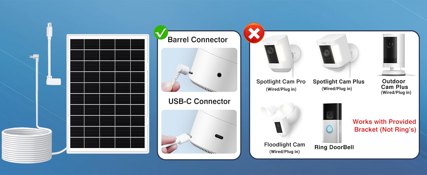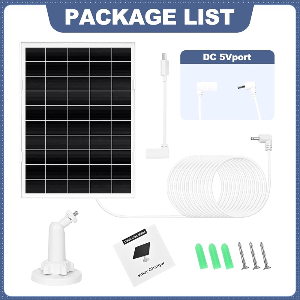 • 【مجموعة شاحن الطاقة الشمسية الدائرية الكاملة】تتضمن لوحة شمسية للكاميرا الحلقية مع كابل بطول 13.1 قدم، ومحول DC إلى USB-C متخصص (كفاءة حلقة فائقة مقابل عامة)، وتركيب وأجهزة. قم بتشغيل كاميرا Ring الخاصة بك للمراقبة اللاسلكية الخارجية دون عناء