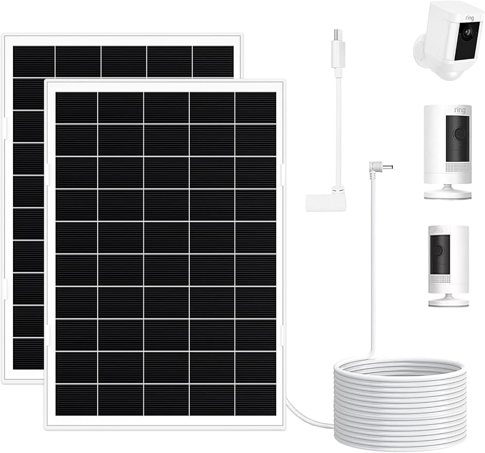 2 حزمة من الألواح الشمسية 8 واط للكاميرا الحلقية اللاسلكية الخارجية، متوافقة مع الكاميرا الخارجية (كاميرا لاصقة)، كاميرا خارجية بلس، كاميرا لاصقة برو، بطارية كاميرا سبوتلايت/زائد/برو، شحن سريع