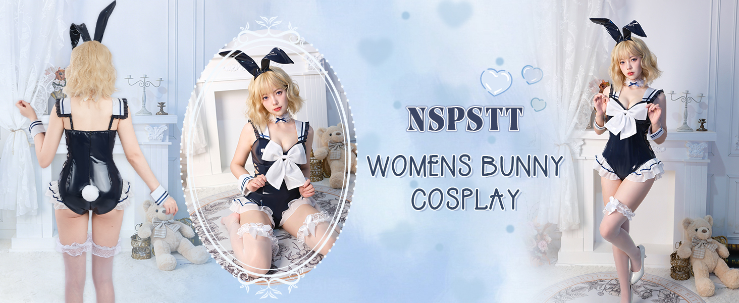 NSPSTT الأرنب زي المرأة الأرنب البدلة هالوين تأثيري ارتداءها مع جوارب
