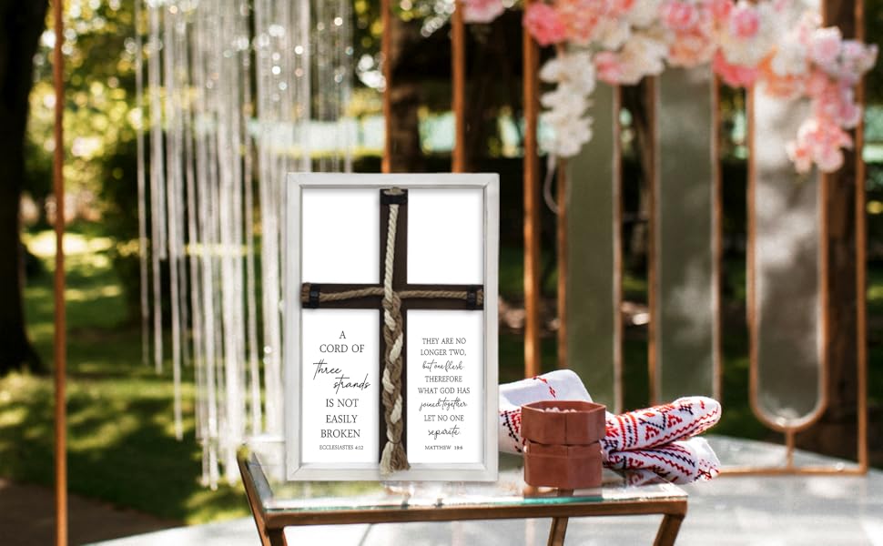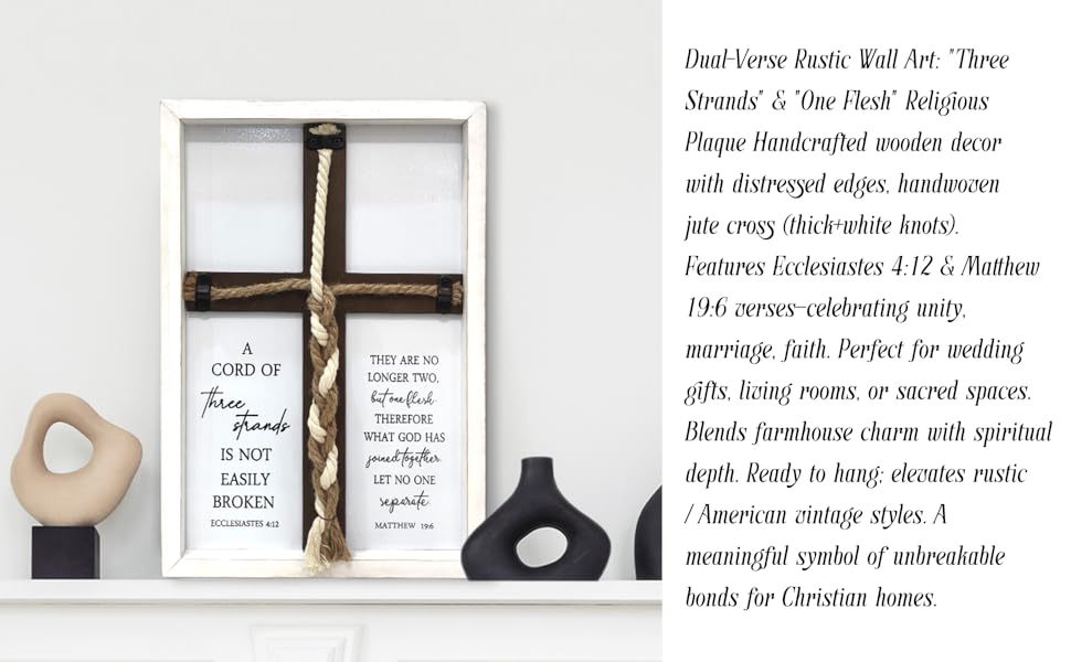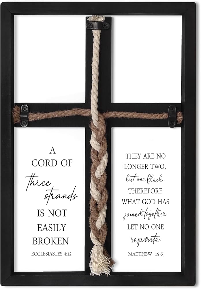 • [لافتات زفاف فاخرة]: هذه علامة وحدة الزفاف. تتميز هذه الصلبان الجدارية الخشبية بالآية "حبل من ثلاثة خيوط لا ينكسر بسهولة. جامعة 4: 12".