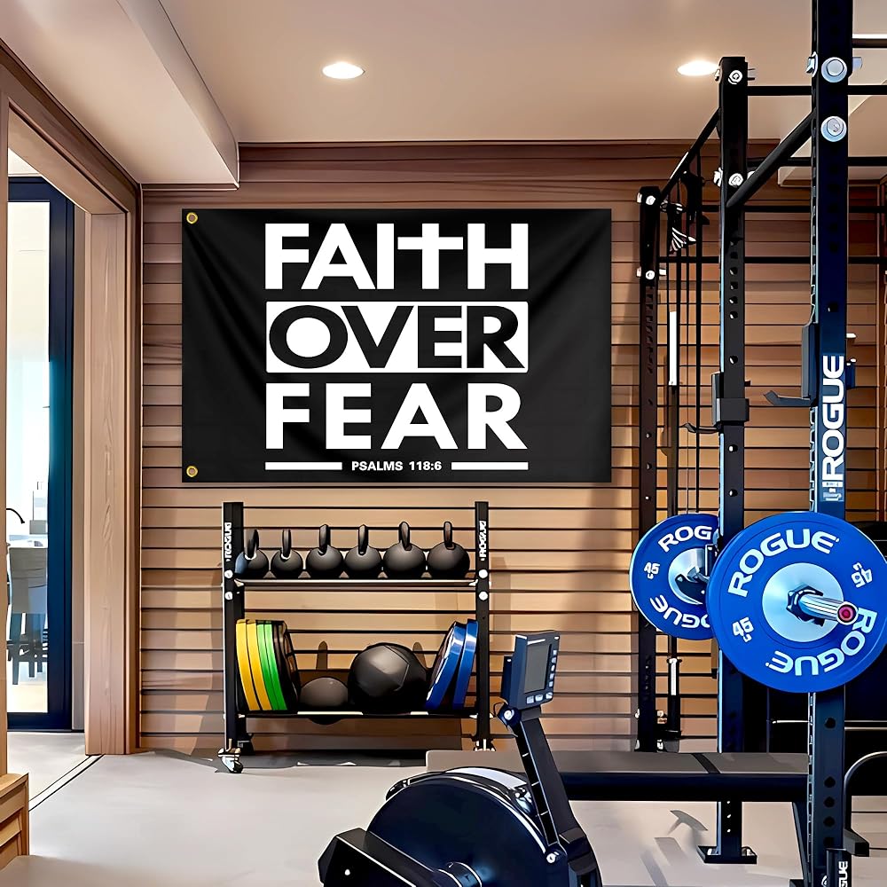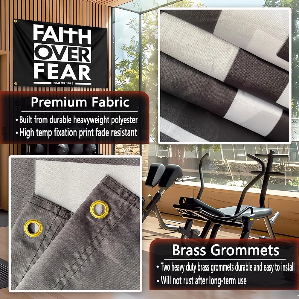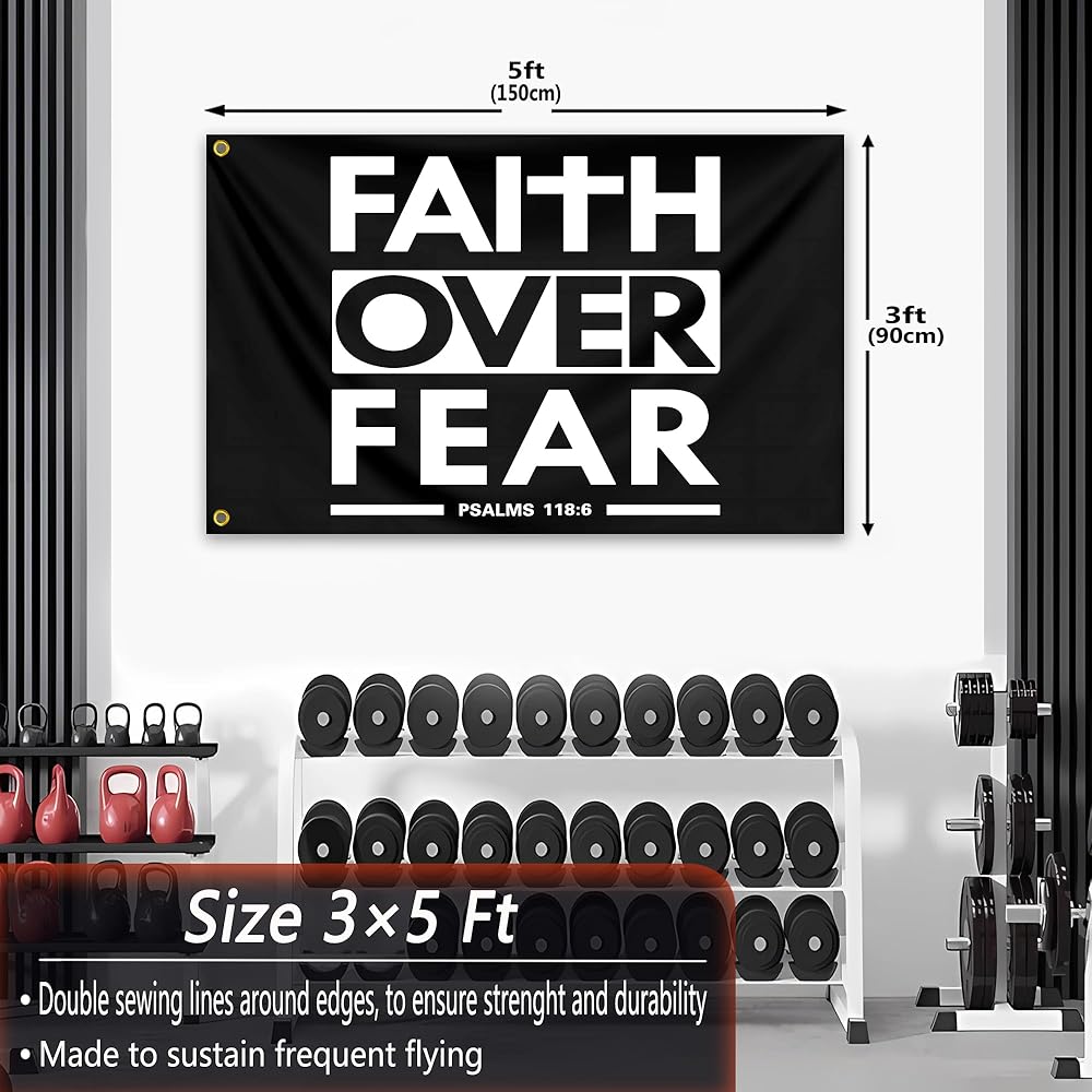 Unique Design: Faith over fear flags are double-sided design, image mirror printing is visible on both sides. the color of motivational flag is super vivid, flags for room teen girls guys, easy to attract people's attention. Use faith over fear banner as a boxing flag, gym flag, dorm flag, fitness flags, boxing gyms flag, home gym flag, gym decor, inspirational banner, office flag, dorm room flag, flags for guys, college dorm flags, flags for home girls, garage poster decor.