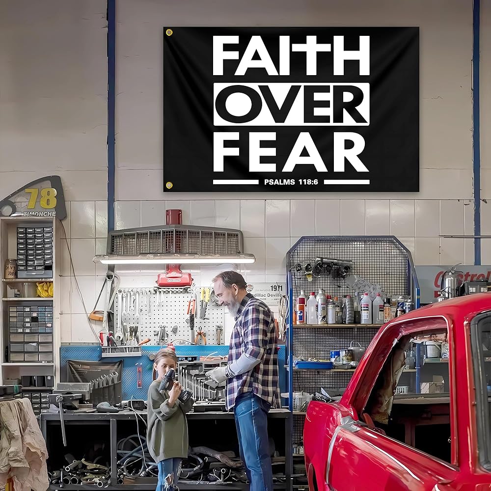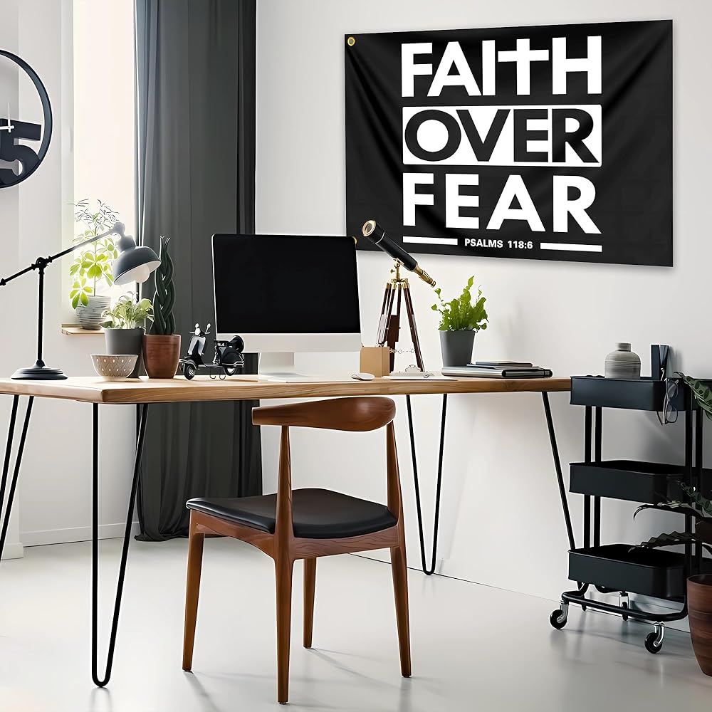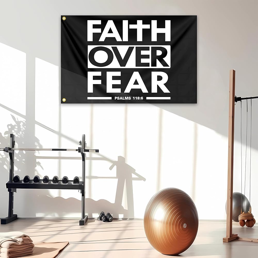 Cool Posters Gift: Faith over fear - motivational flag 3x5 reminder wall poster is a perfect gift idea for your boss, men/women friend, leadership, workmate entrepreneur leadership, also can be a great Inspirational wall decor. You can give it to your relatives and friends as a valentine's day, party, christmas, new year gift,, teacher's day or other special moments. and it's an excellent addition as funny man cave flag, boxing gyms flag, student athlete flag, garage flag, motivational posters.