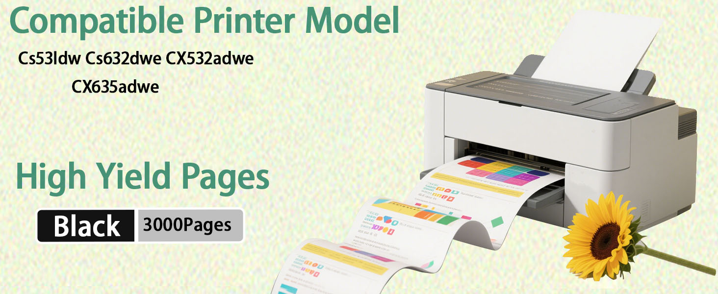 إنتاجية عالية للصفحات: تتمتع خراطيش الحبر السوداء CS531 بإنتاجية تصل إلى 3000 صفحة (بتغطية 5% من Letter/A4)، مما يوفر تكرار الاستبدال ويقلل من تكلفة الملكية على المدى الطويل.